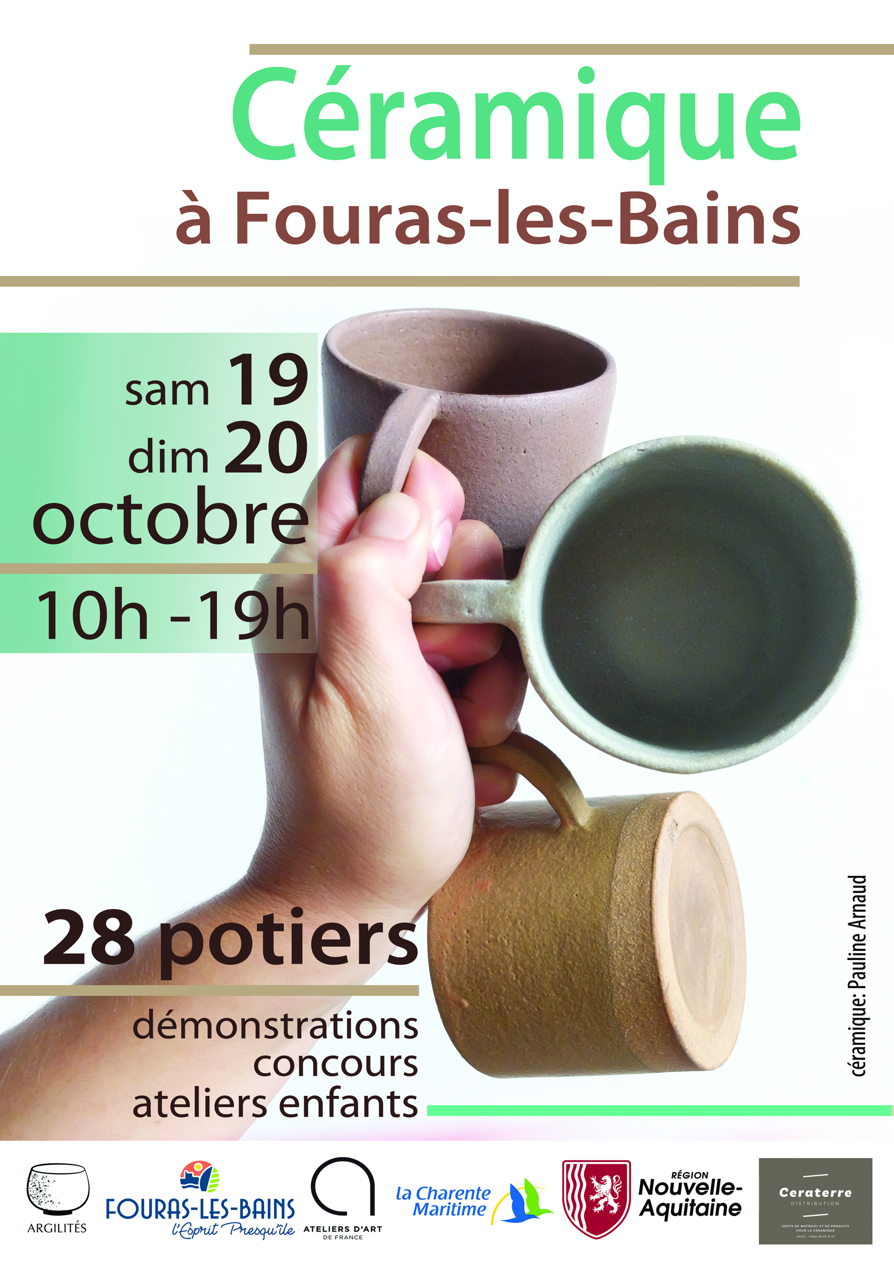 « Céramique à Fouras » accueillent 28 exposants et proposent 3 animations : une démonstration de tournage, un atelier modelage enfant et un jeu concours (5 bons d’achat gagnés et dépensés sur les stands de potiers) et un votant tiré au sort qui remportera la pièce élue coup de cœur.
