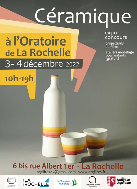 En plein cœur de La Rochelle, dans la très belle salle de l’Oratoire, nous souhaitons sensibiliser un large public aux métiers de la terre en exposant des céramiques décoratives, utilitaires, artistiques. Les artisans présents sont sélectionnés pour la qualité, la maîtrise et l’originalité de leur travail : art de la table, sculpture, décoration, bijoux…